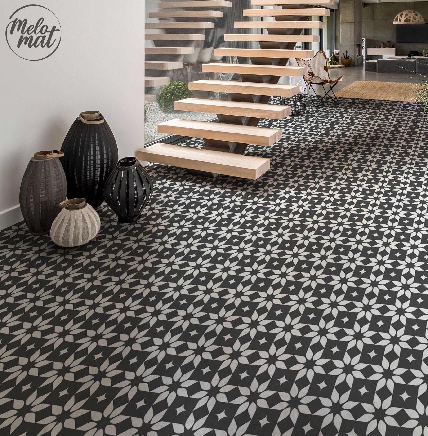 Lotus Vinyl Flooring Dark Grey Floor Decor White Linoleum Etsy Canada